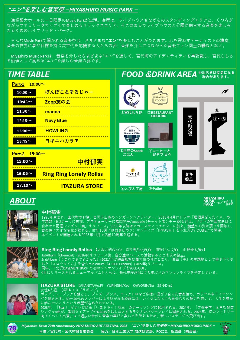 埼玉県宮代町:”エン”を楽しむ音楽祭 -MIYASHIRO MUSIC PARK-