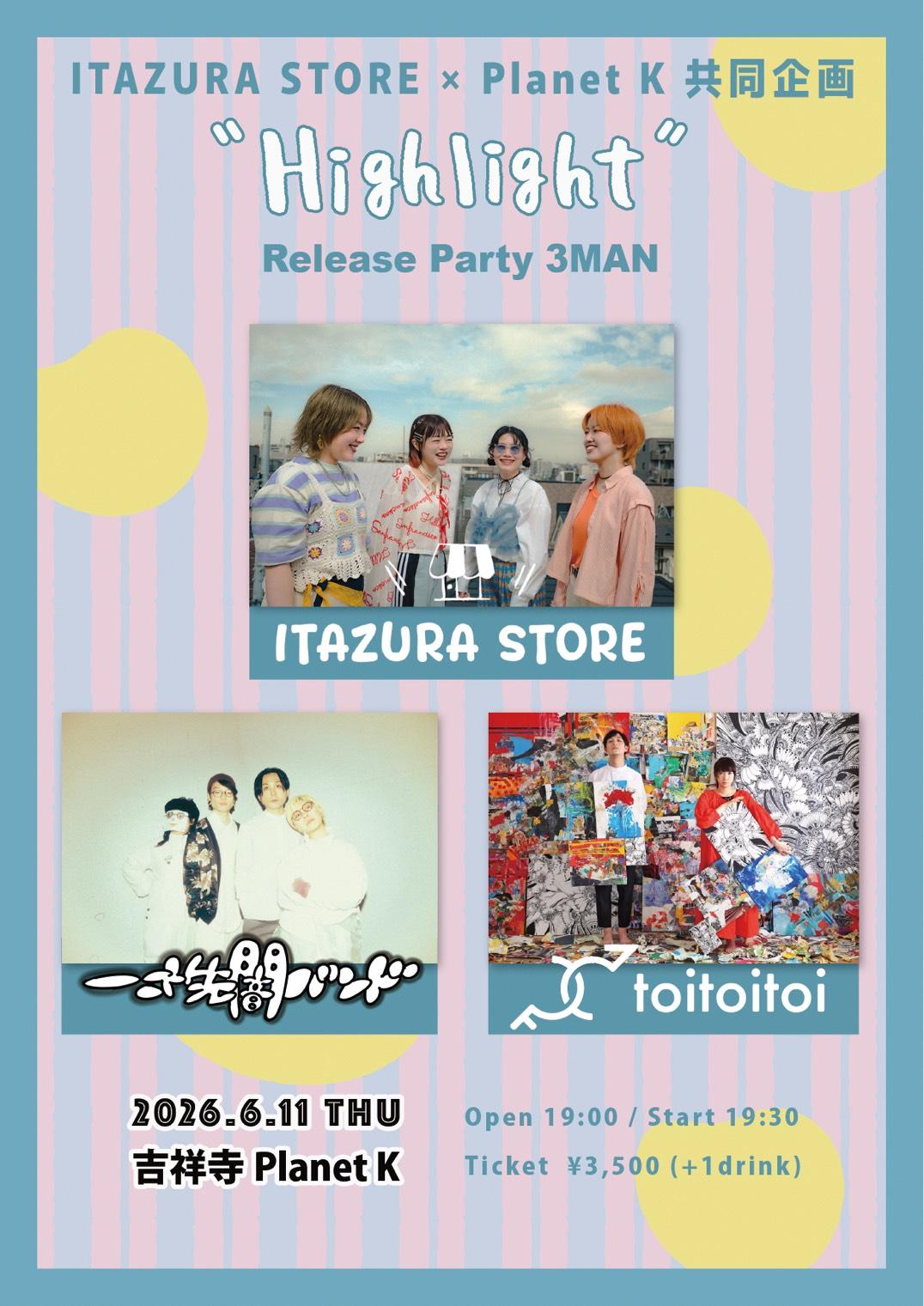 吉祥寺Planet K:ITAZURA STORE × Planet K 共同企画「"Highlight" Release Party 3MAN」