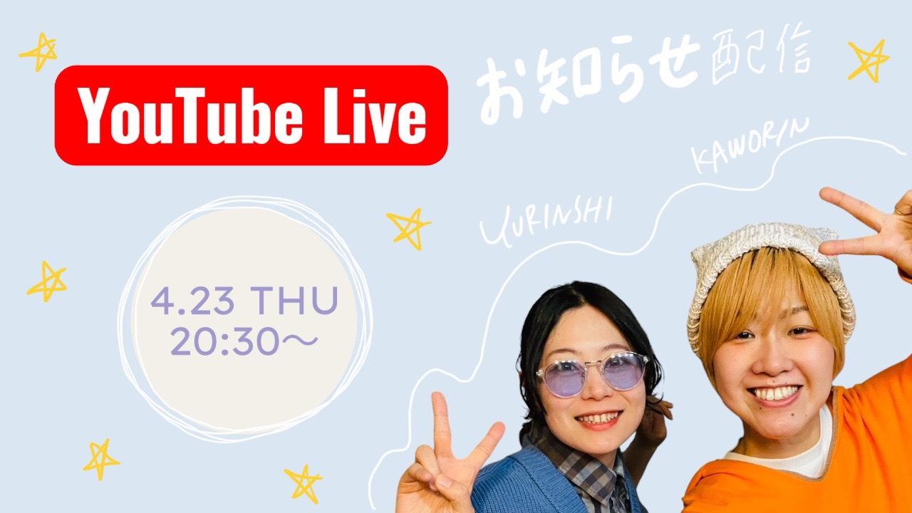 YouTube Live: お知らせ言いたいITAZURA STOREのSpring & Summer SP(※KAWORIN・YURINSHI)